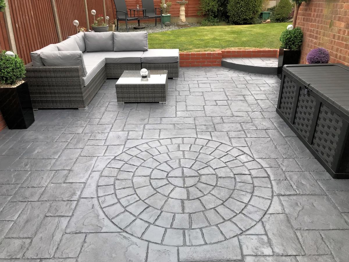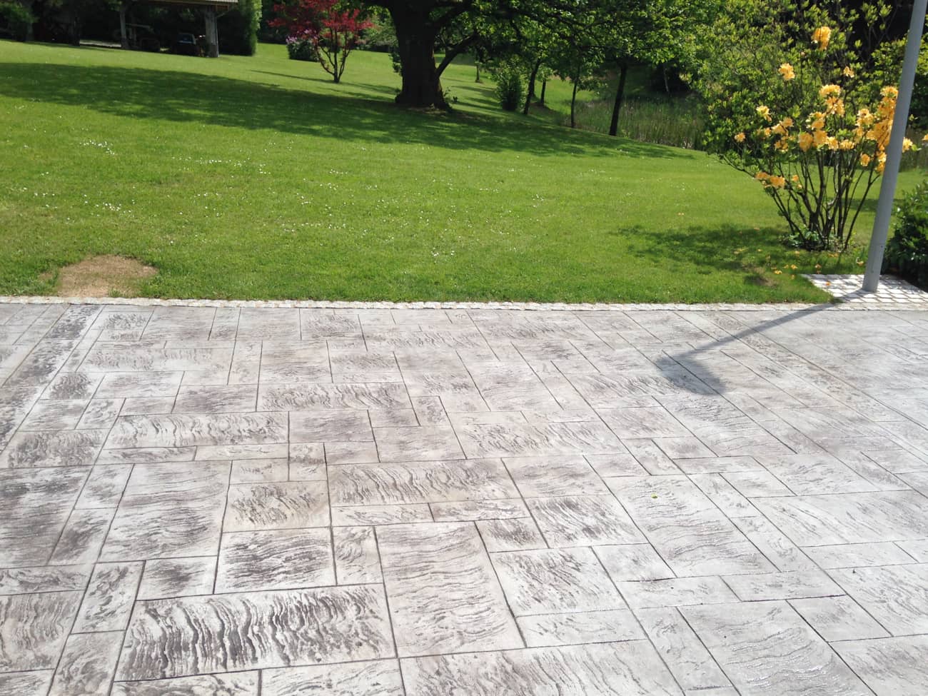 A concrete printed driveway can be designed by us to compliment your outdoor landscape or you may want the concrete stamped to match the style of your house. The versatility of concrete is what makes a concrete patio such a great choice! A printed or stamped concrete patio can be moulded into any shape to fit your needs or creative ideas. One of the most attractive advantages to having a concrete patio is the wide range of choice.